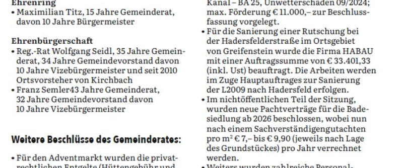 Ab 2026 beträgt der m² Preis für Gemeindepachtgründe € 7 - 9,90 je nach Lage !!!!!